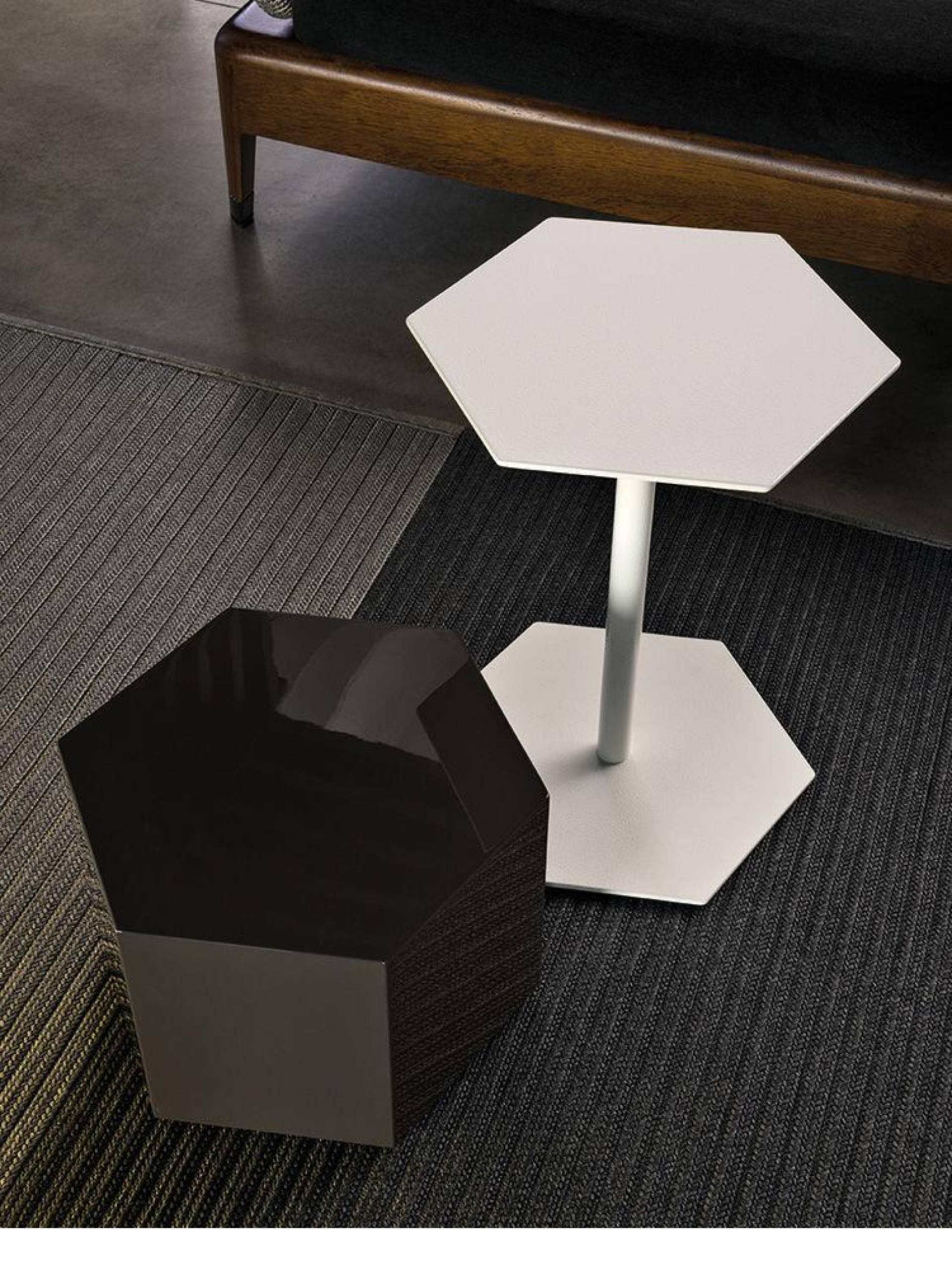 Основание и столешница журнального стола Brisley «Outdoor» полностью симметричны и повторяют форму шестиугольника, что позволяет создавать оригинальные пары с акцентными столиками Aeron Outdoor. Металлическая конструкция окрашена в белый цвет с эффектом бучардированной отделки.