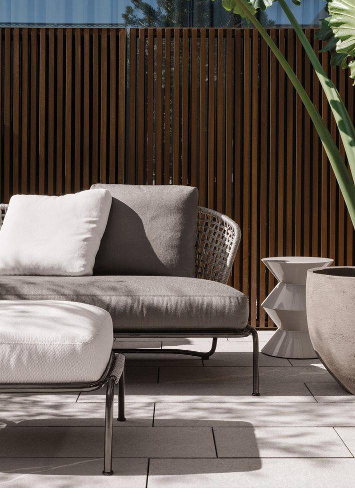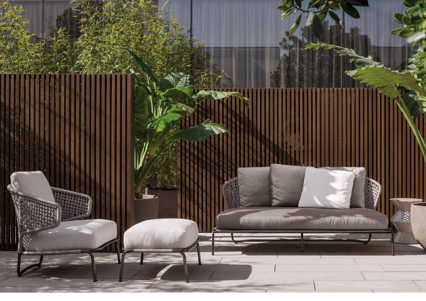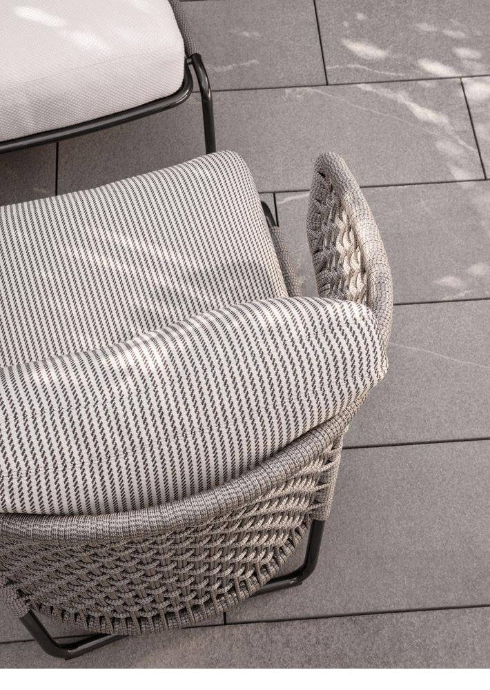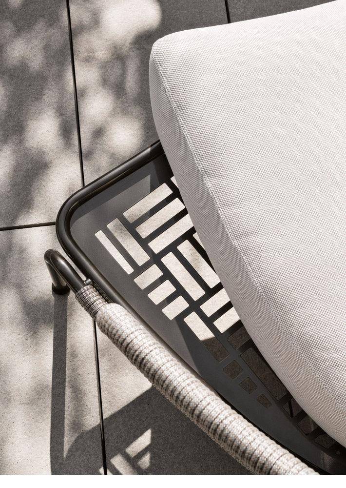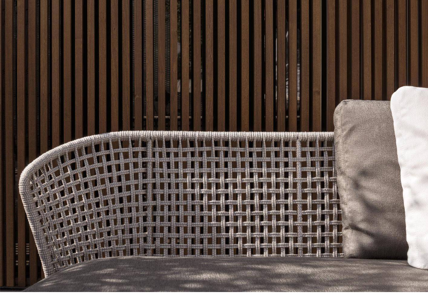 Коллекция Aston «Cord» Outdoor поставляется с металлическим каркасом цвета олова, окрашенным полиэстером, специально обработанным для наружного использования, а также с мягкими подушками, покрытыми водонепроницаемой тканью. Спинка сиденья выполнена из специального плетеного полипропиленового шнура диаметром 7 мм, доступного в нескольких цветовых вариациях.