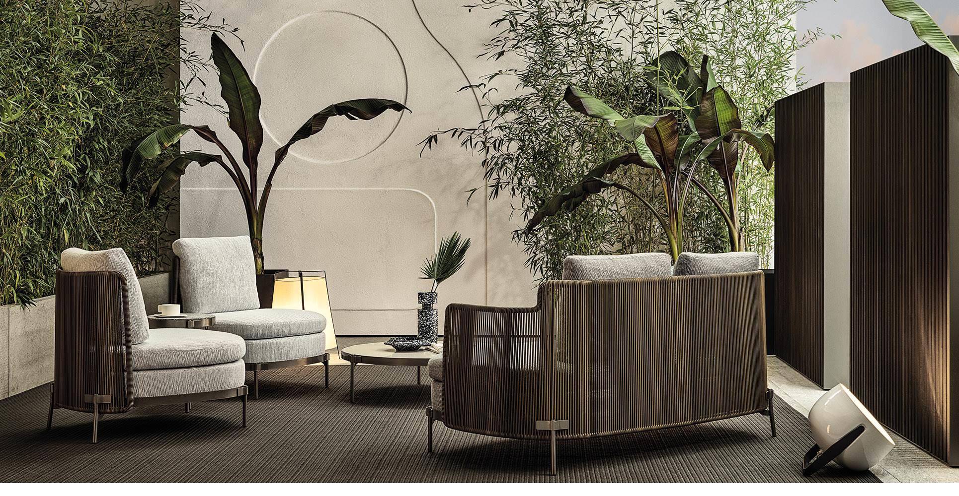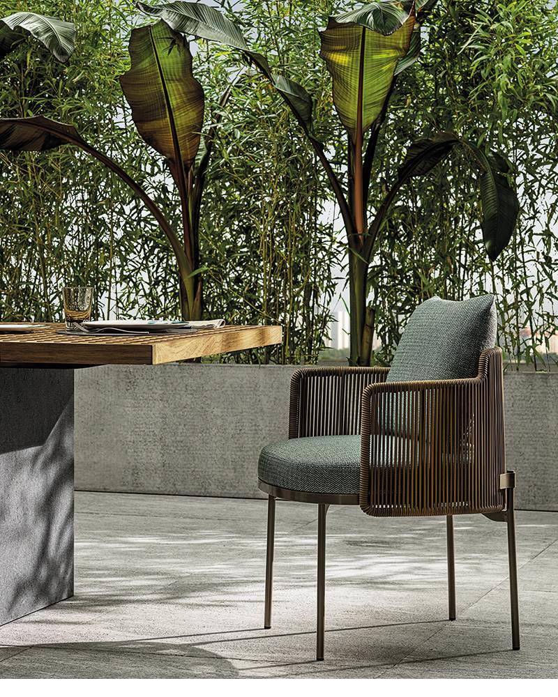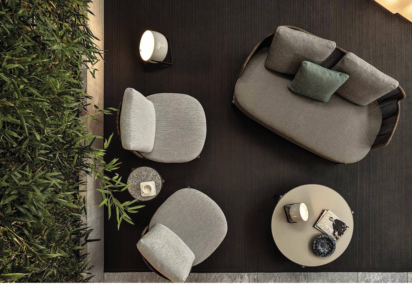 Сиденья становятся более глубокими, большими и более расслабляющими, а металлический каркас в новой отделке для улицы покрыт шнурами с эффектом плетения, доступными в двух цветах: Mud и Liquorice.