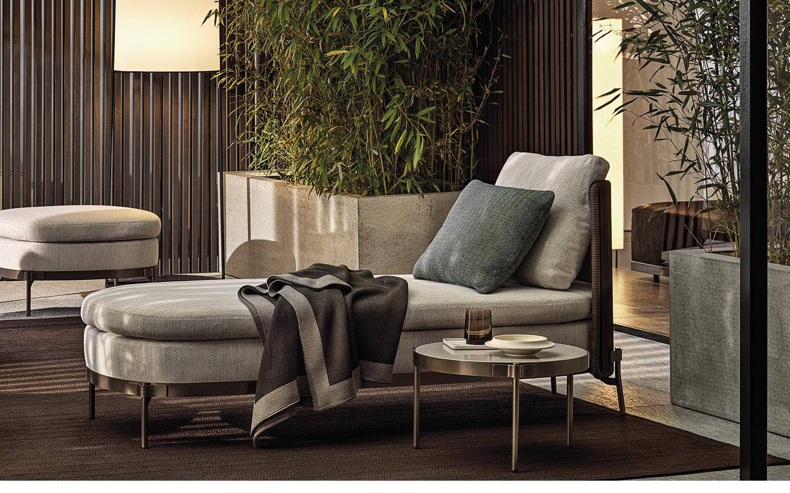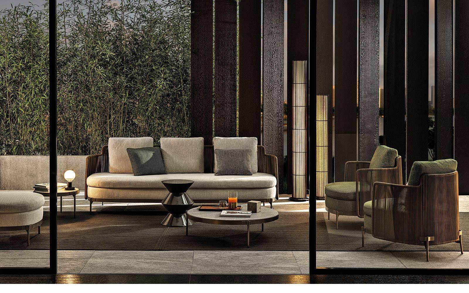 В 2020 году Оки Сато разработал семейство сидений и аксессуаров Torii, доступных как для жилых помещений, так и для гостиничных заведений: очень подробный проект, в котором обыграны округлости объемов, тонкость профилей и кажущаяся формальная простота, в то же время подчеркивая подход от кутюр в характерном портняжном мастерстве Минотти.