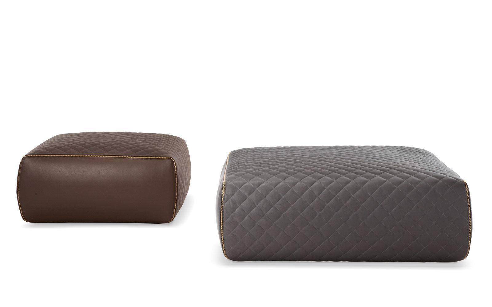 Квадратный пуф Ashley в кожаной стеганой обивке, декорирован молниями по краям. Основание создано из дерева, наполнение из пенополиуретана. Доступен в разных размерах и с декоративными элементами разных цветов.