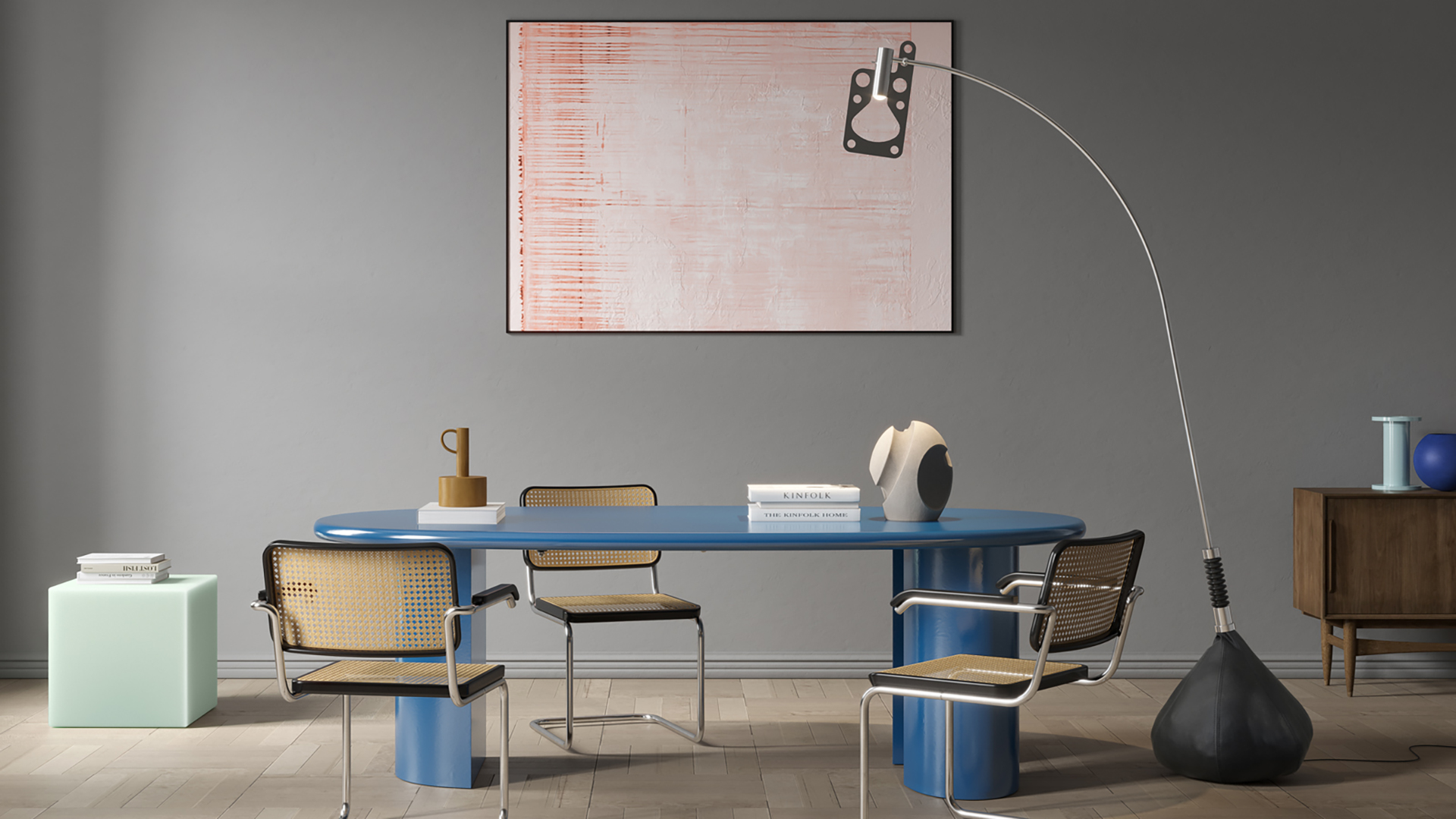 Светильник Bul-Bo принадлежит к серии предметов интерьера, разработанных для резиденции Olivetti в Ивреа (Турин) архитектурной фирмой Gabetti & Isola (Роберто Габетти, Аймаро Изола, Гвидо Дрокко, Лучано Ре) в период с 1968 по 1971 год. Над этой моделью работал дизайнер, который все еще находился под сильным влиянием просвещенного ума Адриано Оливетти, умершего несколькими годами ранее.