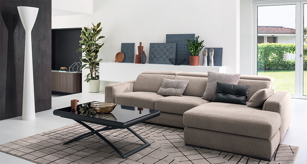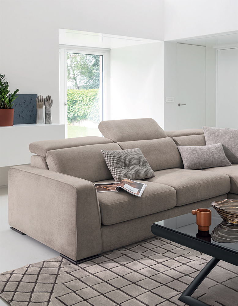 Простые и обволакивающие линии для Cast, дивана с выдвижным сиденьем, защелкивающимся механизмом положения и боковым шезлонгом.