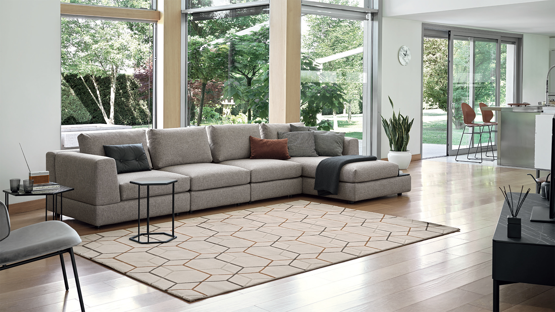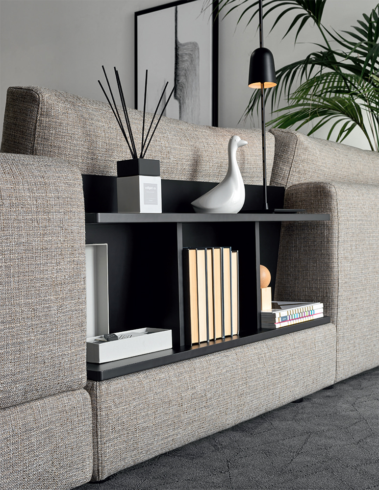 Благодаря простому и минималистичному дизайну Layla отвечает множественным эстетическим и функциональным потребностям каждого. Любители чтения непременно оценят модули с небольшими встроенными книжными шкафами и столиками. Доступны различные типы модулей в двух вариантах ширины (80см или 104 см), что делает этот диван одним из самых универсальных в коллекции. Сиденье из плотного пенополиуретана с поверхностным слоем из технополимера для большего комфорта оснащено эластичными ремнями, спинка из пенополиуретана особенно мягка за счет наполнения из смеси пуха и шариков из технополимера. Layla - отличное решение для многофункциональной гостиной в современном стиле.