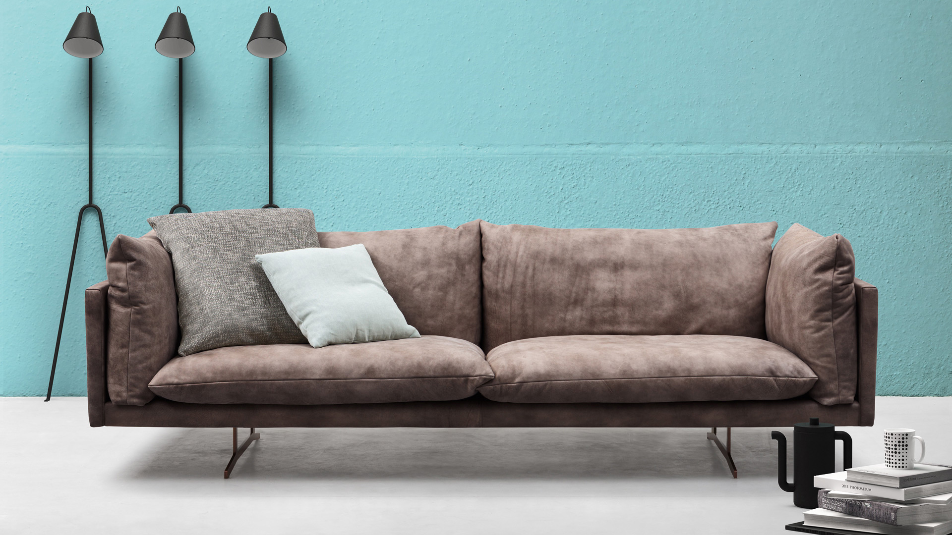 Oslo - диван, мягкая набивка которого сочетается с правильной формой основания и подлокотников. Oslo на ножках из крашеного металла предусмотрен в пяти вариантах ширины и двух вариантах кресла.